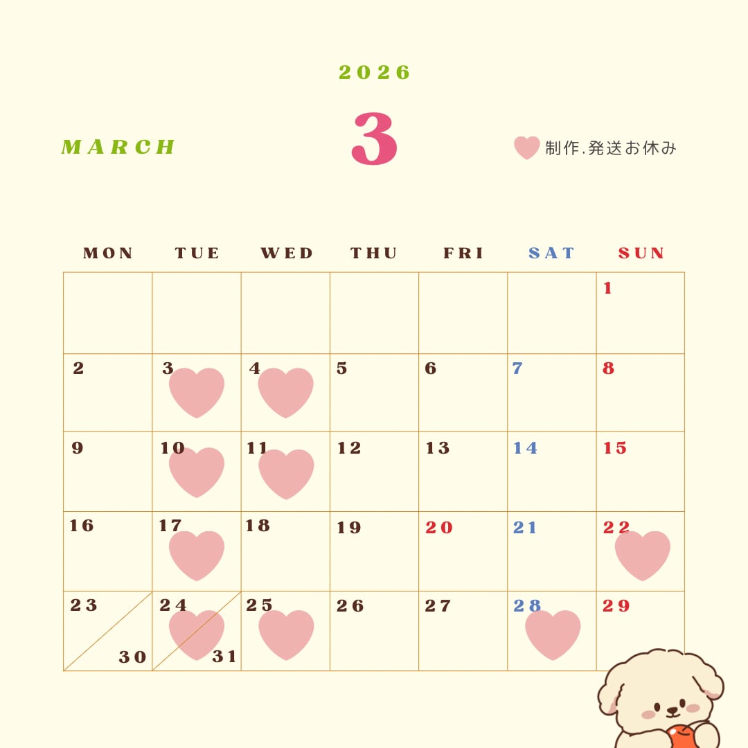 印のついている日は制作発送をお休みさせていただきます。